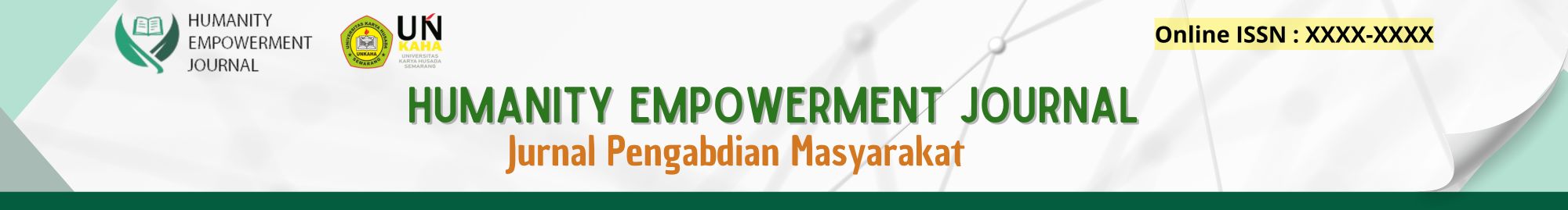 Humanity empowerment journal is a community service journal that publish biannually, on March and October. The Publishing is under the authority of Faculty of Law, Management and Informatics, Karya Husada University of Semarang This journal focus and scope are in field of Training and Marketing that are utilized for community empowerment, SMEs and local communities; Community empowerment; Social Access; Community Service Activities by Students; Empowerment of Border Area Communities; Education for Sustainable Development; Community Empowerment Program; Design and Reach Appropriate Technology for Communities.